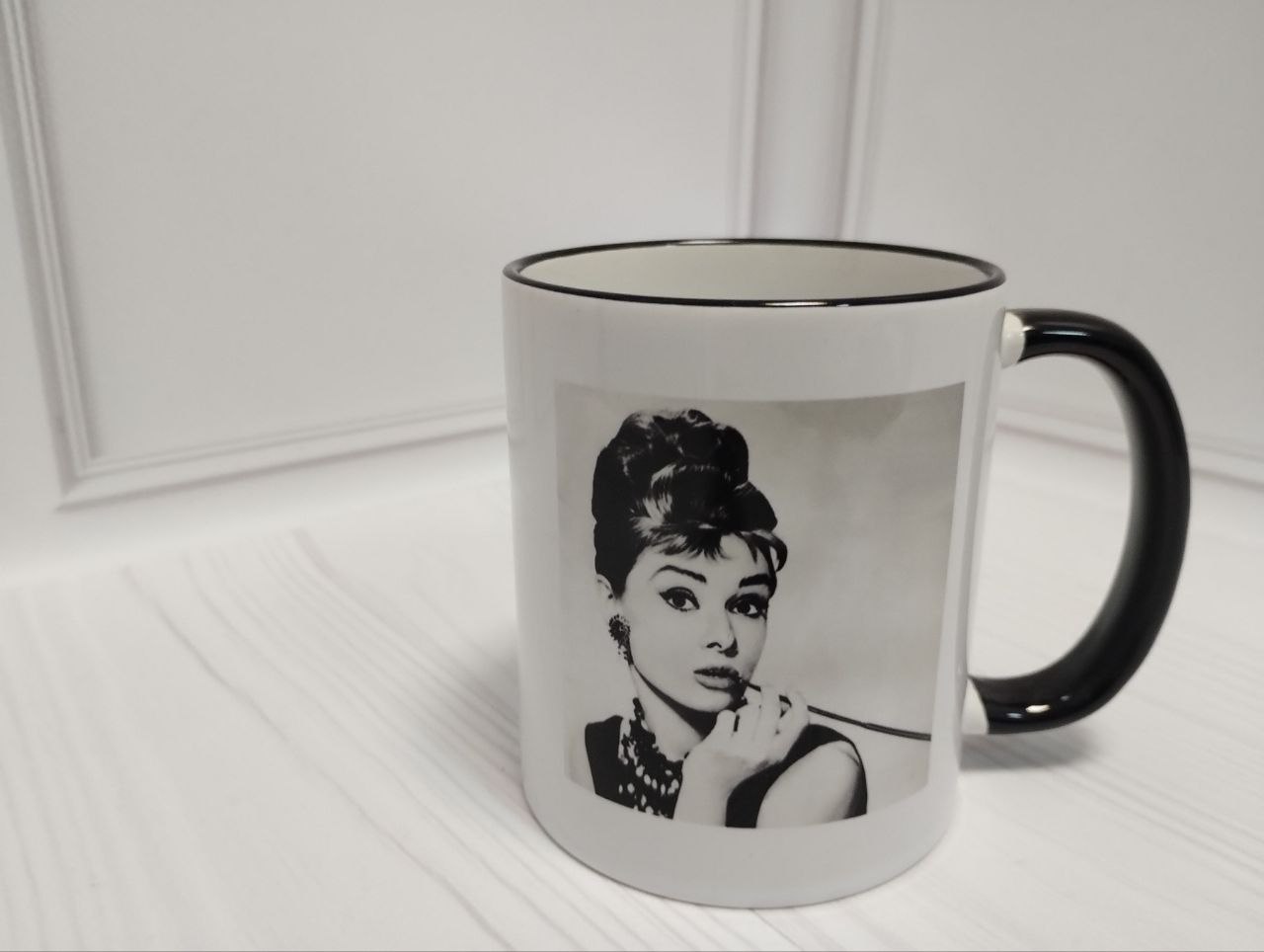 Чашка з кольоровим обідком з принтом 330 мл. з незначним дефектом друку або виробу